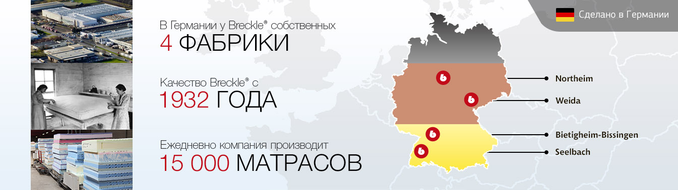 Компания Breckle — не только крупнейший в Европе производитель ортопедических матрасов и предметов для сна, но еще и старейшая европейская компания на рынке товаров для сна и отдыха.